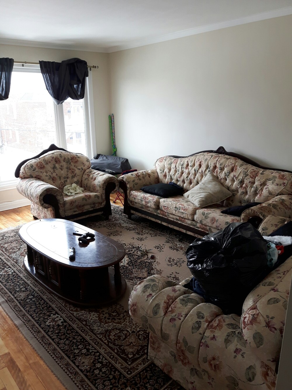 So as you can see from the photo above, my mother in law has a thing for flowers which is nicer in it’s own way. Now I’m not here to knock anyone else’s style but this is not my style at all. The good thing is my mother in law has no attachment to set so it wouldn’t be an issue when we eww ready to get rid of them. My husband and I knew that we wanted to make a change asap. Not only because the living room set wasn’t our style but they honestly weren’t that comfortable either.